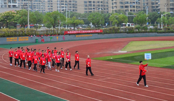 上午7:30,開(kāi)幕式正式開(kāi)始,今年是新中國(guó)成立70周年,麗汽員工著“中國(guó)紅”運(yùn)動(dòng)服,個(gè)個(gè)精神抖擻、神采飛揚(yáng)。由麗汽集團(tuán)員工組成國(guó)旗、司旗、會(huì)旗、會(huì)徽方隊(duì)和9支代表隊(duì)、1支裁判員代表隊(duì)依次通過(guò)主席臺(tái)檢閱。