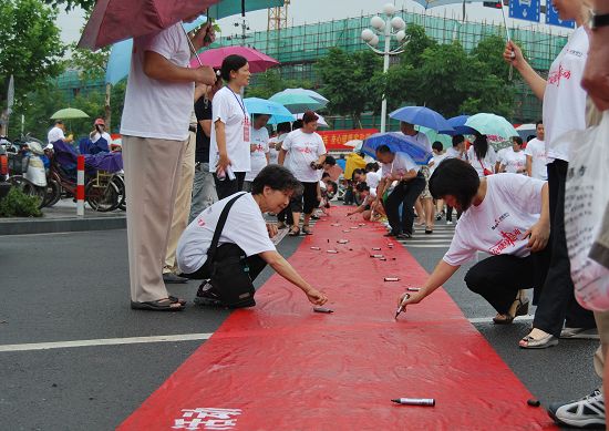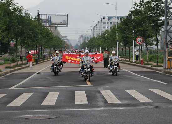 健步走隊(duì)伍在麗水市委書記陳榮高的帶領(lǐng)下,從濱水公園出發(fā),沿著花園路-囿山路-宇雷路-江濱路返回濱水公園,盡管活動開始后不久,天空就下起了小雨,但是這絲毫沒能阻擋大家的熱情,隊(duì)伍冒雨堅(jiān)持走完了全程。到達(dá)終點(diǎn)后,大家在印有麗水市“全民健身日”暨萬人健步走活動的橫幅上簽字。