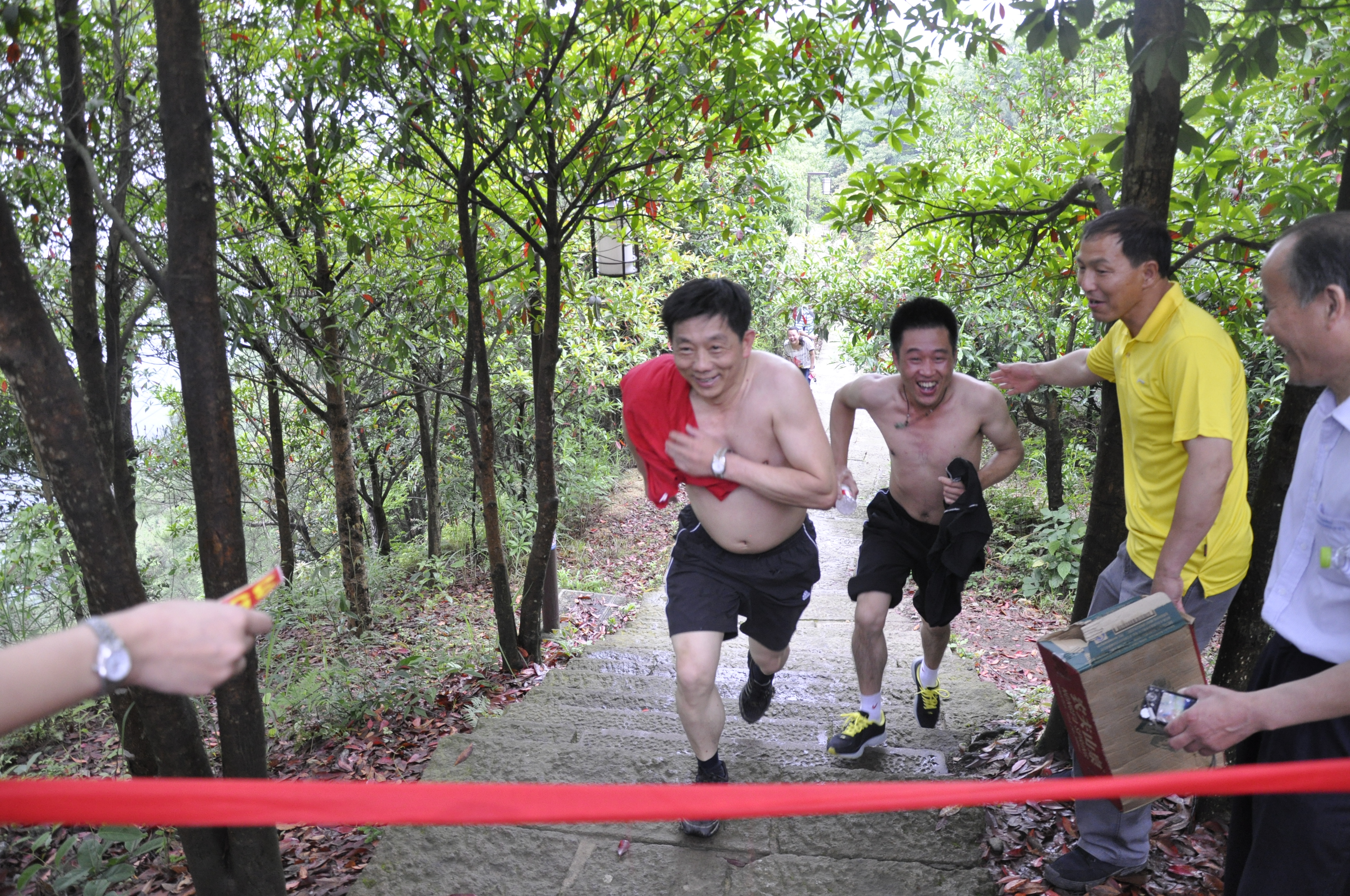 因拔河比賽冠軍要在運動會正式比賽期間產(chǎn)生,因此登山比賽也成為了集團公司第五屆職工運動會產(chǎn)生首個冠軍的比賽項目。隨著裁判員的一聲令下,54名運動員爭搶著向著終點跑去。14分38秒后,快客分公司曾國偉第一個跑著經(jīng)過終點;客運東站樂進15分16秒后第二個經(jīng)過終點,客長運分公司鄭雅明以16分07秒居第三。
