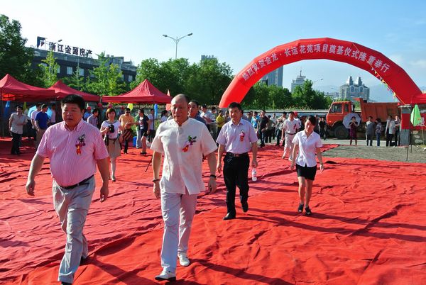 在一聲聲振奮人心的禮炮聲中,金龍集團(tuán)、南明房地產(chǎn)開發(fā)有限公司董事長王岳成鄭重宣布:“金龍.長運(yùn)花苑建設(shè)項(xiàng)目開工!”