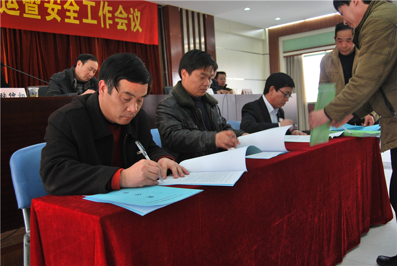 會上副總經(jīng)理薛和有對集團公司2011年春運工作作了布置,安全機務(wù)部經(jīng)理李秦杭對集團公司2011年安全生產(chǎn)工作作了布置??偨?jīng)理虞大貴代表集團公司與各相關(guān)單位簽訂了2011年安全生產(chǎn)責任書和綜合治理責任書。