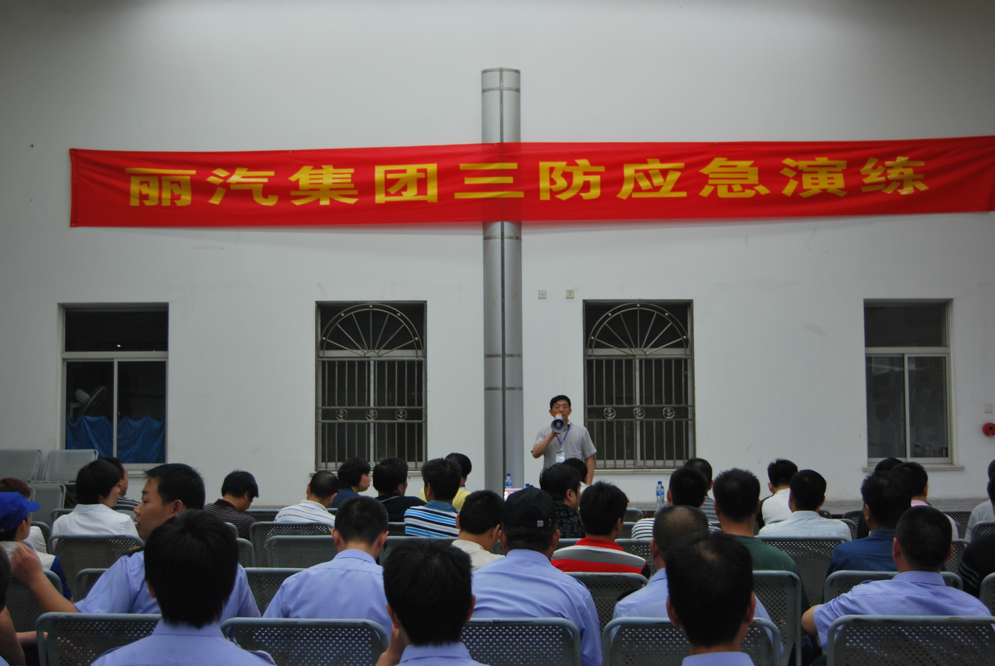 演練隨即進(jìn)入第二環(huán)節(jié)??傊笓]宣布調(diào)派“三防”應(yīng)急分隊,不到5分鐘,由保衛(wèi)人員組成的“三防”應(yīng)急分隊集結(jié)完畢,來到演練現(xiàn)場。