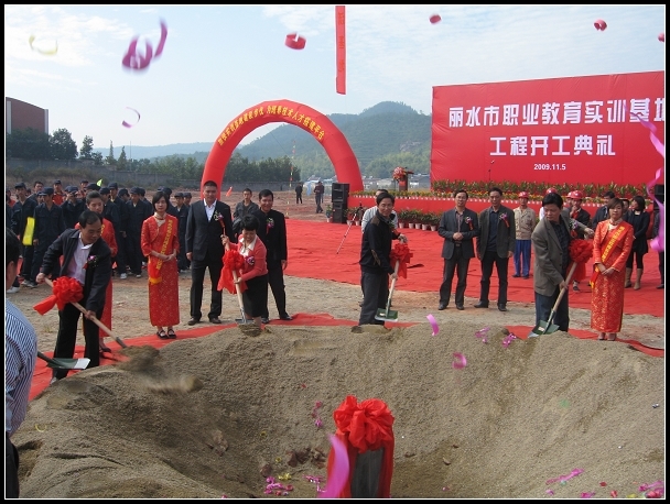 11月5日上午,在陣陣禮炮聲中,市重點(diǎn)工程--麗水市教育實(shí)訓(xùn)基地正式開(kāi)工建設(shè)。麗水市委副書(shū)記、市長(zhǎng)盧子躍、副市長(zhǎng)廖思紅等領(lǐng)導(dǎo)出席開(kāi)工典禮。