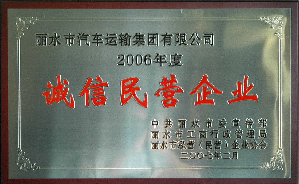 2006年度麗水市誠信民營企業(yè)