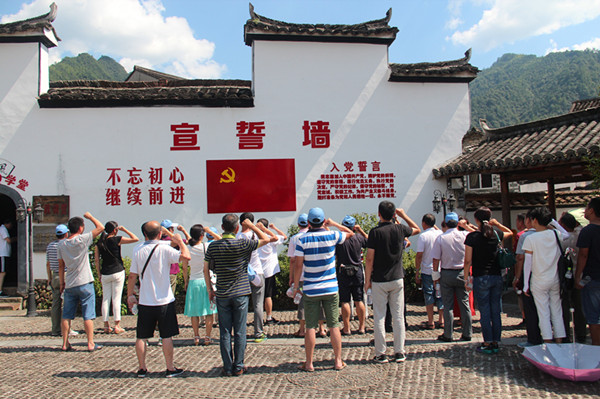 在有著“浙江井岡山”之稱的住龍鎮(zhèn),大家頂著火紅的驕陽重走住溪村紅軍街、參加紅軍學校的學習、參觀了紅色文化廣場和浙江最早建立的一個縣級蘇維埃政府,回顧了粟裕、劉英率領(lǐng)的中國工農(nóng)紅軍挺進師開創(chuàng)浙西南革命根據(jù)地的紅色歷史。參加活動的黨員還在宣誓墻前莊嚴地舉手宣誓,再一次重溫入黨誓詞,接受了一次黨性洗禮。
