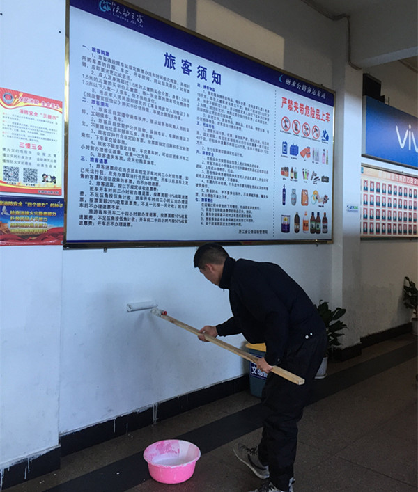 春節(jié)的腳步越來越近,為了提升站場的整體形象。1月13日下午亮點,東站黨員志愿服務隊的隊員們在支部書記江小華的帶領(lǐng)下對候車廳、過道、辦公室走廊、樓梯口等墻壁進行粉刷。