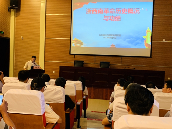 黨課由中共麗水市委黨史研究室的邱理平老師授課,他從唐公憲到遂昌創(chuàng)建中共組織開始,到第一個(gè)浙西南黨支部遂昌黨支部的成立,浙西南的革命部隊(duì)逐漸壯大,再到土地革命,在麗水的這片土地上,擁有了黨、政、軍、群團(tuán)四大力量,可謂掀起了局部革命的小高潮,但還是迎來國民黨圍剿,麻植、蔡鴻猷、季步高等革命先驅(qū)相繼遇害,浙西南革命事業(yè)受挫。星星之火可以燎原,經(jīng)過不懈努力,遂昌縣工農(nóng)革命軍成立,是中國共產(chǎn)黨在浙西南建立的第一支革命武裝。革命的力量不斷壯大,浙西南作為大后方,為紅軍的戰(zhàn)略大轉(zhuǎn)移,起到了非常重要的作用。