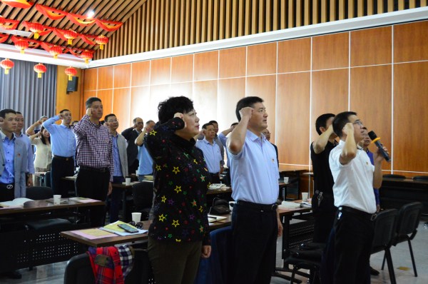 “我志愿加入中國(guó)共產(chǎn)黨,擁護(hù)黨的綱領(lǐng),遵守黨的章程,履行黨員義務(wù),執(zhí)行黨的決定,嚴(yán)守黨的紀(jì)律,保守黨的秘密,對(duì)黨忠誠(chéng),積極工作,為共產(chǎn)主義奮斗終身,隨時(shí)準(zhǔn)備為黨和人民犧牲一切,永不叛黨”,黨委書記黃偉君帶領(lǐng)與會(huì)人員重溫入黨誓詞。