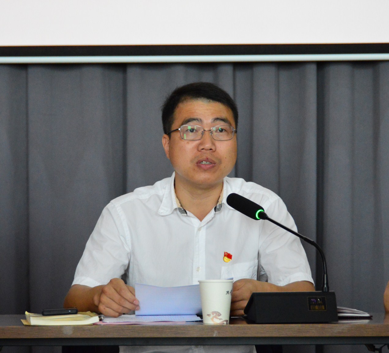 薛和有副書記結(jié)合主題教育中學(xué)習(xí)“兩書一章”的收獲、感悟和思考,圍繞“四個(gè)意識(shí)”“四個(gè)自信”“兩個(gè)維護(hù)”要求,以“講政治、懂規(guī)矩、守紀(jì)律、勇?lián)?dāng)”為題授課。