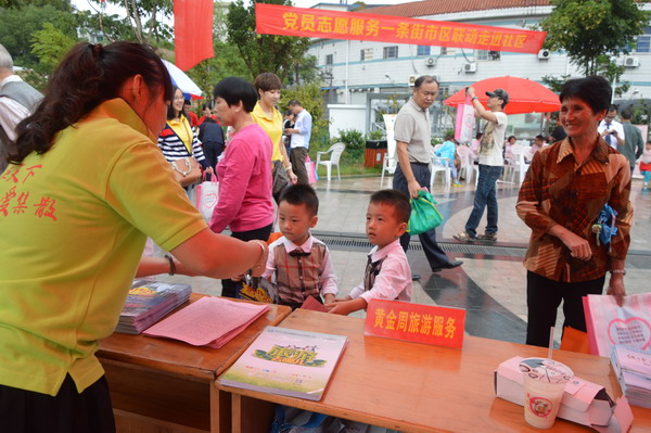 為踐行黨的群眾路線,進(jìn)一步推進(jìn)服務(wù)型黨組織建設(shè),解決服務(wù)群眾“最后一公里”問題,9月20日上午,麗汽集團(tuán)積極組織黨員志愿服務(wù)者參加了由市直機(jī)關(guān)黨工委在市區(qū)燈塔公園舉行的黨員志愿者服務(wù)一條街“市區(qū)聯(lián)動走進(jìn)社區(qū)”活動。來自麗汽集團(tuán)本部、客運(yùn)西站、旅游集散中心、伊翔和甌龍(甌翔)等單位的12名黨員志愿服務(wù)者為社區(qū)居民提供了國慶黃金周汽車票預(yù)定、黃金周旅游、汽車銷售維修等服務(wù),同時(shí)還開展了微心愿征集活動。