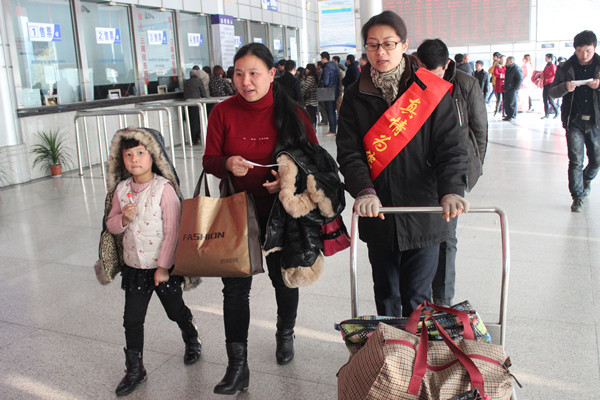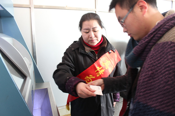 隨著2月4日“青春志愿行,溫暖回家路”2015年志愿者服務(wù)春運(yùn)“暖冬行動”的啟動,2月5日,客運(yùn)西站黨員志愿者服務(wù)隊(duì)和“流動之家”志愿者服務(wù)隊(duì)也正式拉開志愿者服務(wù)春運(yùn)“暖冬行動”的序幕。志愿者們將在整個春運(yùn)期間,在售票廳、進(jìn)站口、服務(wù)臺等位置,為旅客提供咨詢、引導(dǎo)、扶老攜幼,自助售票導(dǎo)購等服務(wù)。