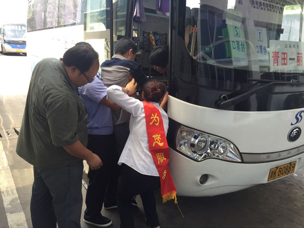 坐“輪椅”的旅客是青田人,因患嚴(yán)重中風(fēng)妻子陪同到麗水就醫(yī),看完病后乘三輪車到汽車東站準(zhǔn)備回青田。因無法獨(dú)自行走正和手提大包、小包行李的妻子在汽車東站門口發(fā)愁。恰好被巡查場地的副經(jīng)理戴宏星和保衛(wèi)科的熊宣標(biāo)看見了,他們趕緊上前,一左一右攙扶起旅客,可是旅客根本不能行走,他倆使勁全力幾乎是半抬的把旅客扶到服務(wù)臺。從售票廳到檢票口短短的五十米路,足足用了十來分鐘。