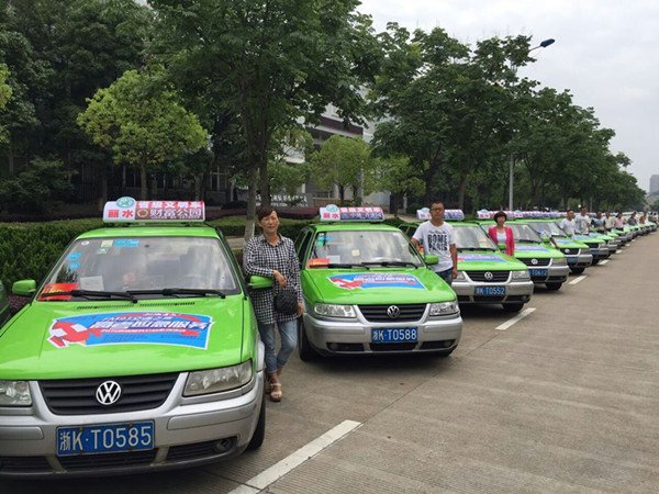 一年一度的高考,牽動(dòng)著人們的心。為了能使今年的“高考應(yīng)急服務(wù)”活動(dòng)圓滿完成,6月6日,所有參加活動(dòng)的52輛出租車,在天寧工業(yè)區(qū)排成長(zhǎng)龍,師傅們?yōu)樽约旱能囐N上統(tǒng)一的服務(wù)標(biāo)志。麗汽集團(tuán)客長(zhǎng)運(yùn)出租車分公司經(jīng)理梁巍代表市區(qū)三家出租車公司發(fā)出“愛(ài)心送考”倡議。麗汽集團(tuán)客長(zhǎng)運(yùn)出租車分公司共有22出租車參與“高考應(yīng)急服務(wù)”。