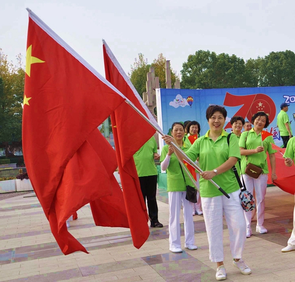 9月29日一早的濱水公園,在8面紅旗和8面麗汽集團(tuán)司旗的簇?fù)硐拢?/span>16名旗手莊重地鋪展開一面巨幅國(guó)旗。早早趕來的麗汽員工和在公園晨練的市民紛紛在國(guó)旗前拍照留念。那一抹鮮艷的中國(guó)紅,映照出的不僅是人們的笑臉,還有所有人心中對(duì)祖國(guó)的依戀。
