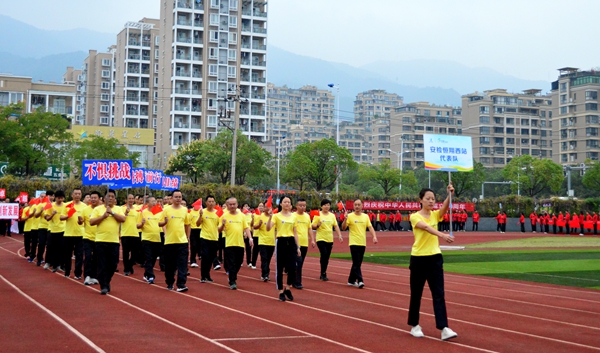 上午7:30,開(kāi)幕式正式開(kāi)始,今年是新中國(guó)成立70周年,麗汽員工著“中國(guó)紅”運(yùn)動(dòng)服,個(gè)個(gè)精神抖擻、神采飛揚(yáng)。由麗汽集團(tuán)員工組成國(guó)旗、司旗、會(huì)旗、會(huì)徽方隊(duì)和9支代表隊(duì)、1支裁判員代表隊(duì)依次通過(guò)主席臺(tái)檢閱。