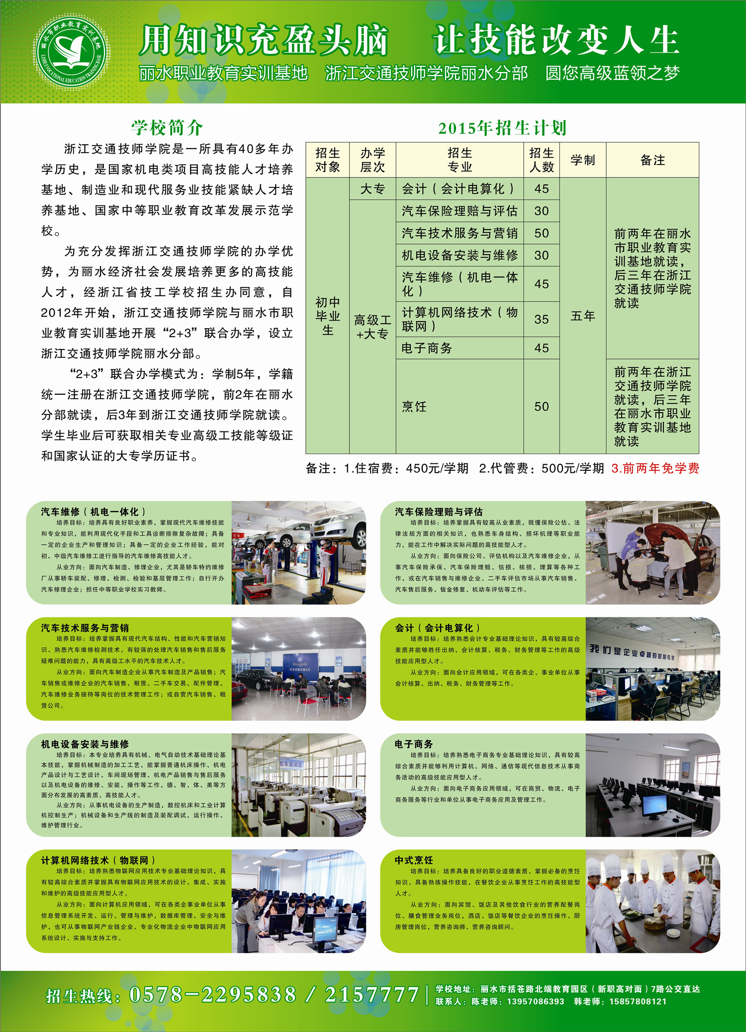 麗水職業(yè)教育實訓基地、浙江交通技師學院2015年招生公告