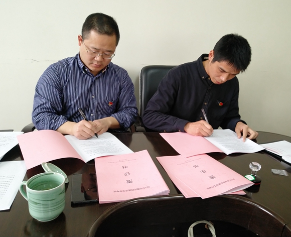 圖為集團(tuán)公司黨委與黨辦及各黨支部簽訂《黨的建設(shè)工作考核責(zé)任書》