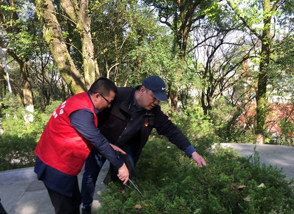 緬懷儀式結(jié)束后,全體黨團(tuán)員一起學(xué)習(xí)了革命先烈事跡,并拿起掃把和鉗子為烈士墓掃去塵埃,除去雜草。