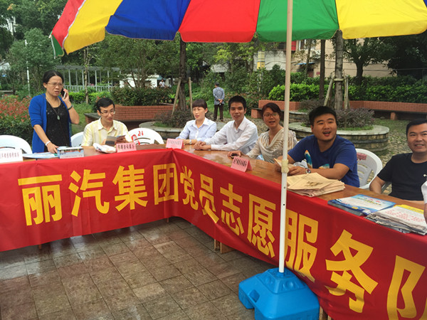 活動當(dāng)天,麗汽集團(tuán)的黨員們一早就來到燈塔公園,面向廣大群眾展開了汽車班車時刻咨詢、汽車銷售維修、汽駕培訓(xùn)咨詢、旅游咨詢、房產(chǎn)銷售咨詢等多項(xiàng)服務(wù)。雖然天空中飄著雨,但黨員同志和社區(qū)群眾的熱情不減,短短半天時間,黨員們共向到場群眾發(fā)放宣傳冊頁及資料2000份,解答咨詢60人次,贈送雨傘200余把,紙巾100盒,環(huán)保袋500只,惠及群眾800人次。