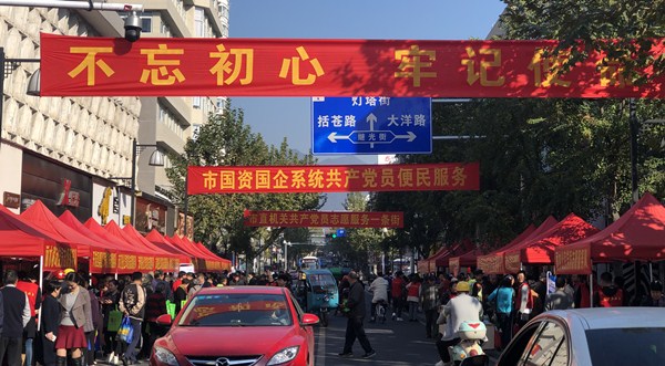 早上8點(diǎn)多,國資委下屬的20多家企業(yè)就在中山街南段設(shè)好攤點(diǎn),為市民群眾服務(wù)。